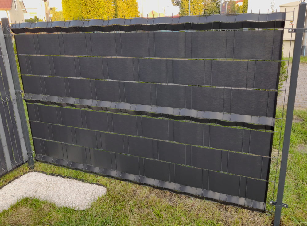 Taśmy zaciemniające mają szerokość 15-19 cm i długość 26 m + 20 klipsów, dzięki czemu pasują do większości ogrodzeń ogrodowych i tarasowych.